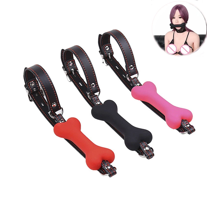 PU Leather Dog Bone Mouth Gag BDSM Bondage Restraints Slave Fetish Latex Oral Fixation Adult Games